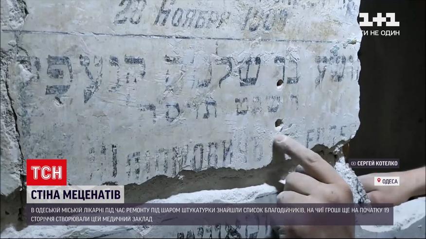Стена меценатов. В одесской больнице во время ремонта под слоем штукатурки нашли список благотворителей, на чьи деньги 2 века назад создавали медицинское учреждение. Усилиями историков, реставраторов, переводчиков уже удалось установить 55 имен. Но еще сотни до сих пор спрятаны под краской.