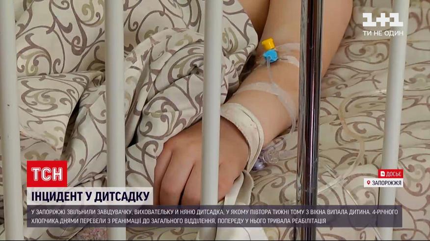 В Запорожье уволили заведующую детского сада, в котором полторы недели назад из окна выпал ребенок. Так решили по итогам внутренней проверки, сообщили в мэрии. Потеряли работу и воспитательница с няней. Пострадавший 4-летний Тимур тем временем до сих пор в больнице. Несколько дней назад мальчика перевели из реанимации в общее отделение. Реабилитация после травмы головы, по словам врачей, продлится полгода. Малыш выпал из окна второго этажа, когда пытался выбраться из закрытой комнаты.