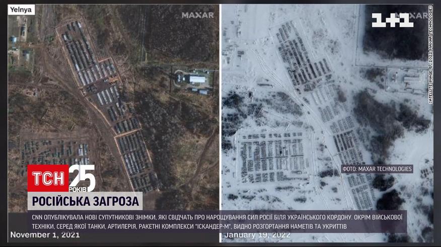 Новые спутниковые снимки, свидетельствующие о продолжении наращивания сил России у украинской границы, опубликовала CNN. Сделала снимки американская компания "Максар Текнолоджис". Там заявляют – развертывание российских войск в настоящее время на повышенном уровне активности и готовности. На фотографиях, кроме военной техники, видно увеличение количества палаток и укрытий.