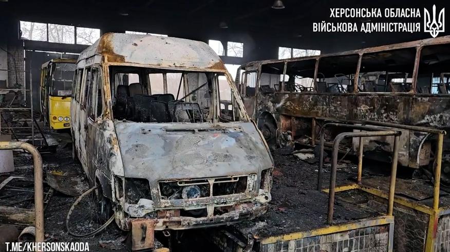Обстрел Херсона: сгоревшие автобусы на АТП сняли на видео
