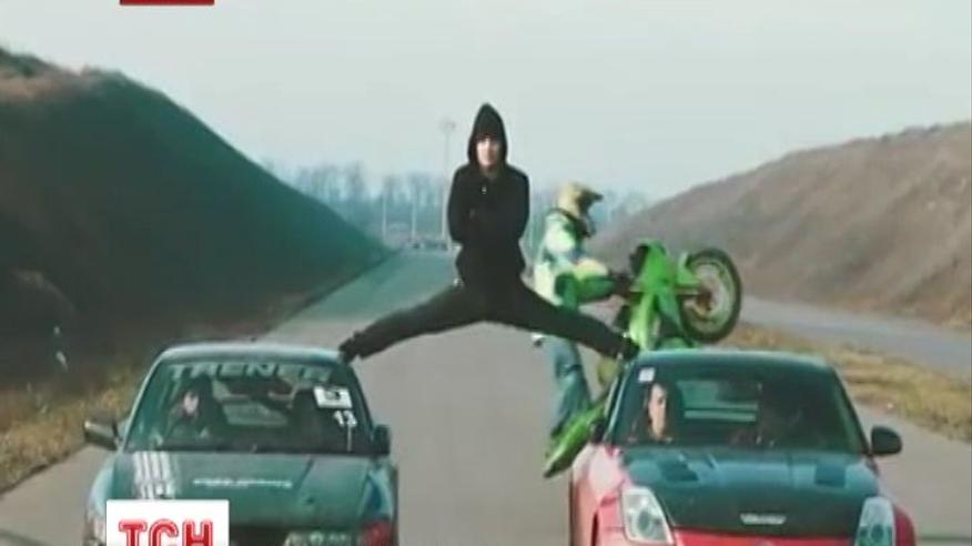 Сам каскадер рассказал ТСН, что съемки длились более четырех часов, и он неоднократно падал с крыши авто.