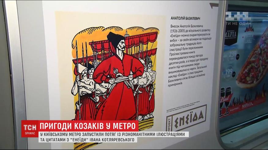 Эней, Дидона и многие другие мифический героев появились в киевской подземке. Вспомнить знаменитый произведение Ивана Котляревского отныне можно в столичном метро. По его синей ветке запустили специальный поезд. Его первыми пассажирами в частности стала и наша съемочная группа.