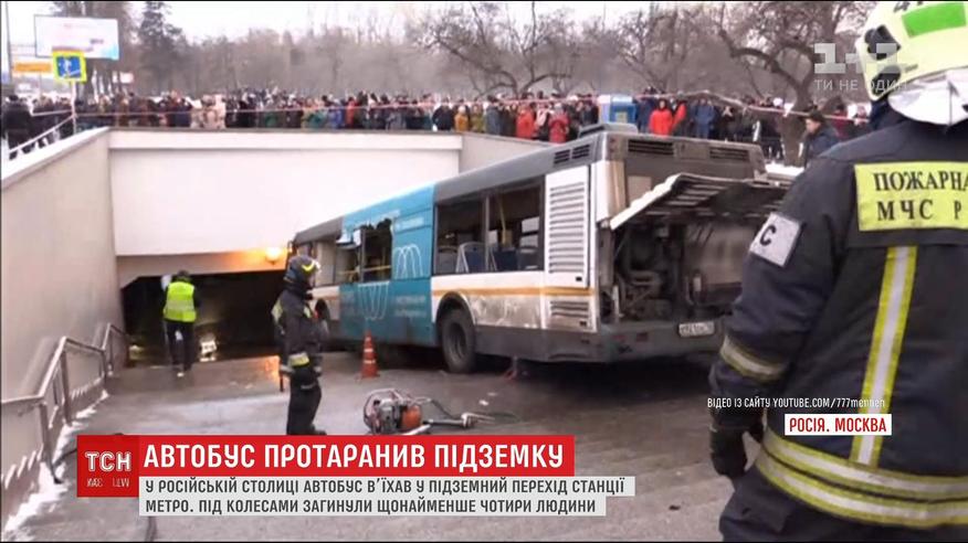 Один из выходов из метро в Москве протаранил пассажирский автобус, есть погибшие