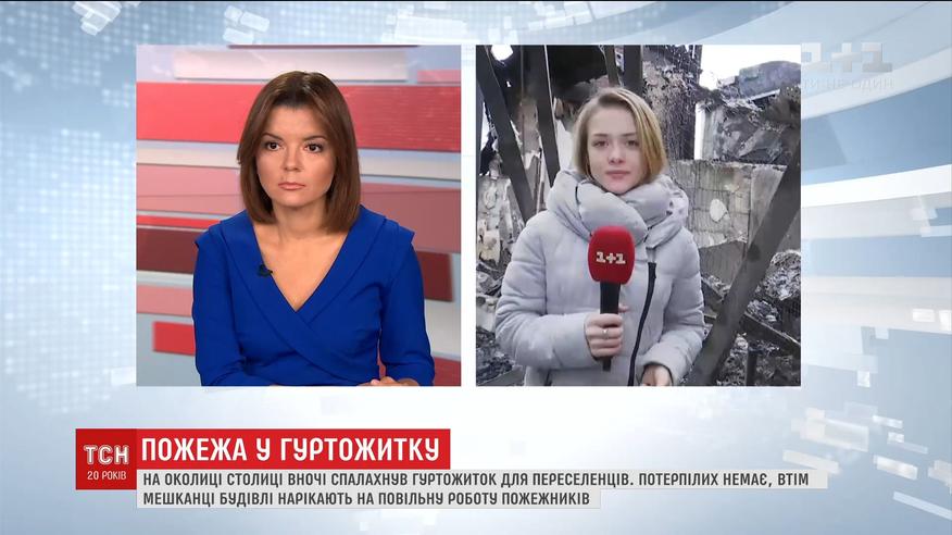 На окраине Киева вспыхнуло общежитие для переселенцев. Ночью один из жителей услышал топот, взрывы и начал будить всех жителей. Люди настаивают, что это поджог, и обвиняют людей, претендующих на здание. Выгорела крыша и третий этаж. В квартиры других этажей огонь не добрался, но их залили спасатели.