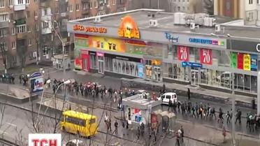 Проспектом Победы колонны людей идут пешком в направлении Майдана, поддержать митингующих и помочь раненым.