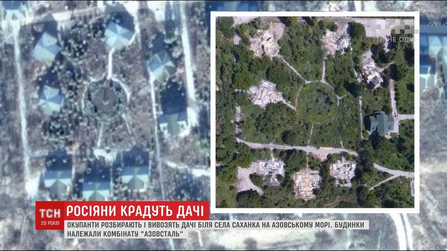 Поселок принадлежит металлургическому комбинату "Азовсталь". И за год этих дач уменьшилось вдвое. Вместо десятка деревянных домов остались одни фундаменты. Российские СМИ заявляют, что они разрушены обстрелами. Но на фото четко видно, что сооружения аккуратно разобраны и вывезены. Свидетели видели, как их снова собирают, но уже на территории России.