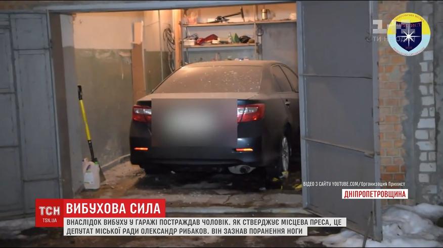 Мужчина - в состоянии средней тяжести в больнице. Он получил ранение ноги и потерял много крови. Местная пресса утверждает - пострадал депутат городского совета Александр Рыбаков. Накануне вечером он заезжал в свой гараж на авто. Свидетели услышали два громких хлопка. Говорят, видели мужчину, который бросил взрывчатку в сторону потерпевшего.