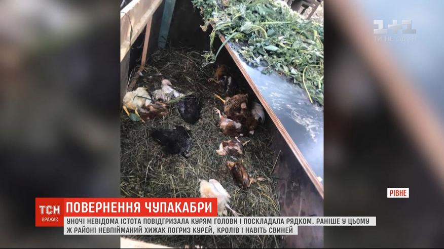 В Ровно неизвестное существо убило кур. Повидгризало головы, а тушки сложило в ряд. Неживых птиц и огромные следы возле курятника утром обнаружила хозяйка. А соседи вспомнили, что неопознанный хищник уже промышлял в этом районе несколько месяцев назад. Тогда его добычей стали десятки кур, кроликов и даже свиньи. Местные снова заговорили о чупакабре.