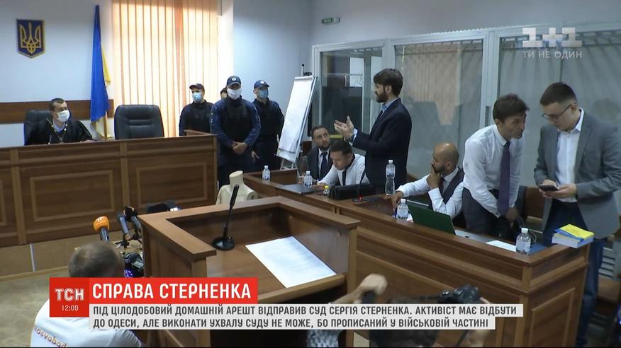 Шевченковский суд Киева отправил под круглосуточный домашний арест одесского активиста Сергея Стерненка. Теперь он должен отбыть в Одессу, но выполнить решение суда не может, потому прописан в воинской части, а туда его просто не пустят. Получается, что это судебное решение невозможно выполнить, поэтому 16 июня его пересмотрят. Прокуроры уже направили ходатайство об изменении адреса, где должен находиться задержанный.