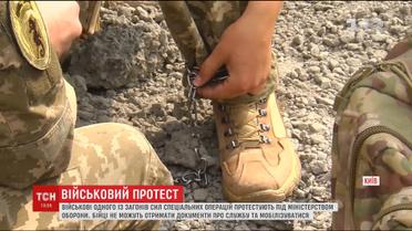 Бывшие военные одного из отрядов Сил спецопераций утром приковали себя к столбу у Министерства обороны. За их плечами Дебальцево, Саур-Могила, Горловка. В прошлом году у ребят произошел конфликт с командиром, и им предложили перевестись в другую часть. Документы для перевода так и не выдали, а из части где служили просто выгнали.