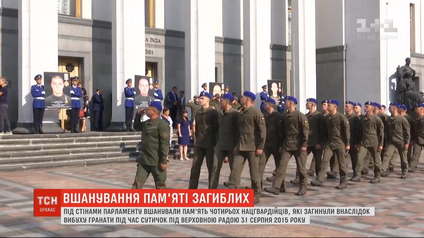 Память погибших от взрыва гранаты нацгвардейцев почтили возле Верховной Рады