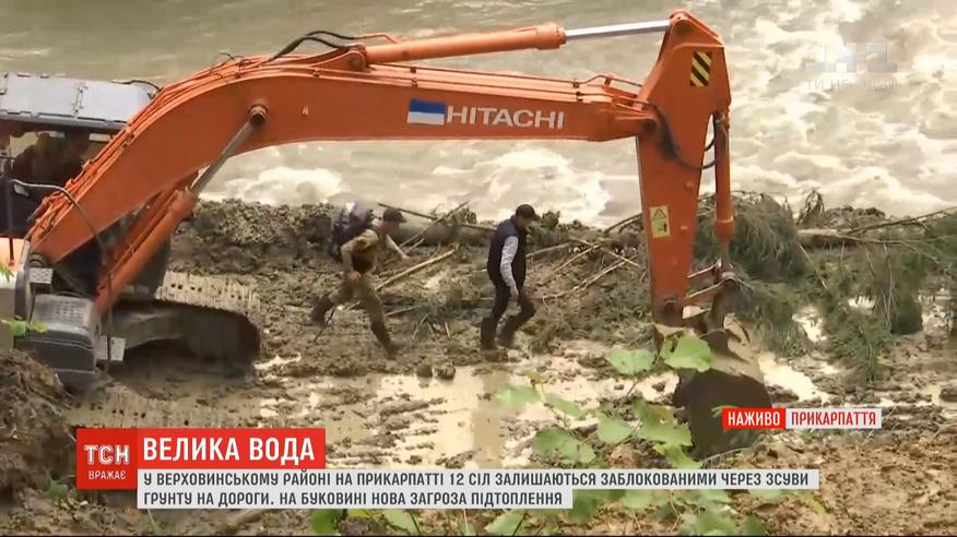 На Прикарпатье в Верховинском районе 12 сел до сих пор остаются заблокированными. Съемочная группа ТСН пыталась до них добраться, но дороги перекрыты из-за оползней. А на Буковине новая угроза подтопления. Там экстренно укрепляют дамбу, которая сдерживает реку Черемош. Плотина под угрозой разрушения, и, если она таки рухнет, в низине затопит сразу несколько сел.
