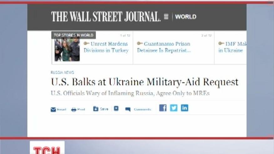 Американское издание Wall Street Journal сообщает, что украинские власти обратились к Вашингтону с просьбой помочь оружием, амуницией и разведданными. В администрации Обамы, впрочем, не захотели расшатывать и без того смутные отношения с Россией.