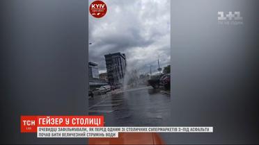 Перед супермаркетом в столице из-под асфальта бил огромный поток воды