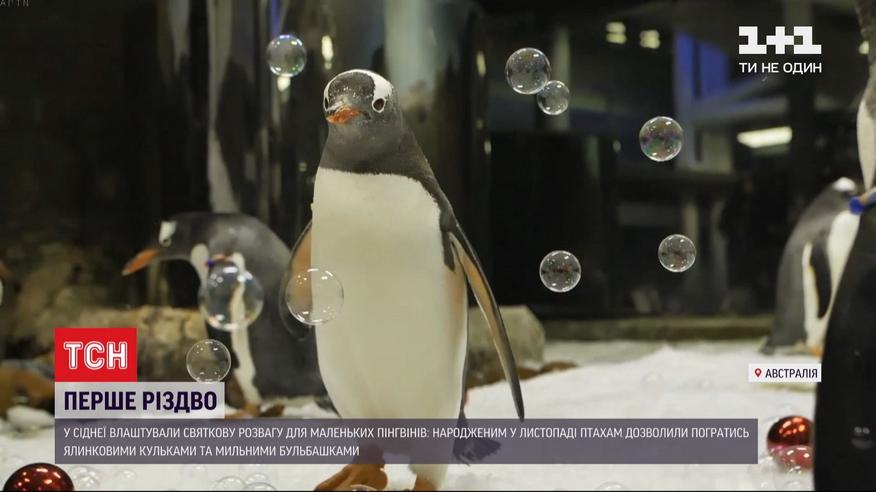 Первое Рождество: в Сиднее пингвинам устроили развлечения с мыльными пузырями