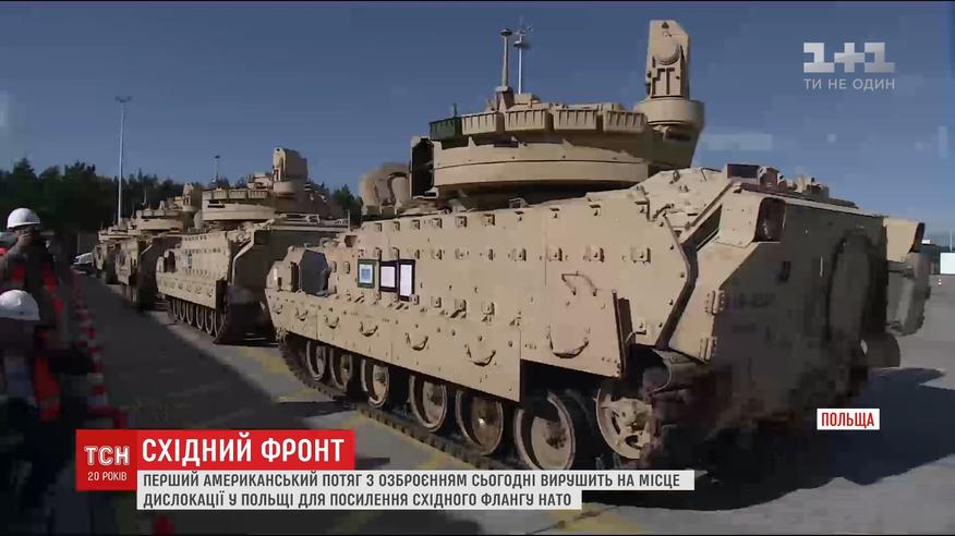 Военное вооружение США разместят в западной части страны. Накануне в Гданьск прибыли американские танки, бронетранспортеры, военные грузовики и самоходная артиллерия. В Соединенных Штатах объясняют, что усиление восточного фланга необходимо, чтобы успокоить союзников НАТО на фоне российской агрессии в Украине.