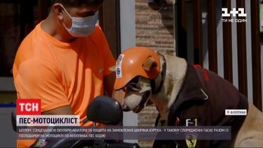 Пес-мотоциклист носится на мотоцикле со своим хозяином