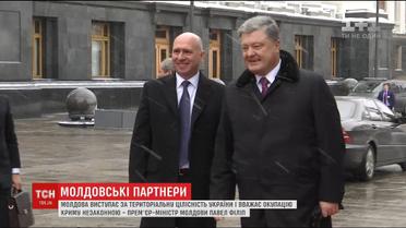 Президент Порошенко отметил сходство вызовов и задач, перед которыми стоят Украина и Молдова - борьба за территориальную целостность и евроинтеграция. Молдавский премьер, прибывший в Киев, заверил, что Кишинев выступает за территориальную целостность Украины и считает оккупацию Крыма незаконной. Так же Порошенко заявил, что Украина и в дальнейшем будет способствовать в урегулировании приднестровского конфликта и будет выступать за целостность Молдовы.