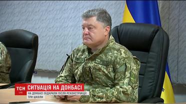 За последние три дня количество обстрелов со стороны боевиков снизилась. Во время "Школьного перемирие" президент Украины посетил военных в Краматорске. Они доложили ему о ситуации в зоне АТО. Порошенко также открыл реконструированные школы в Покровске, в Дружковке и Часовом Яре.