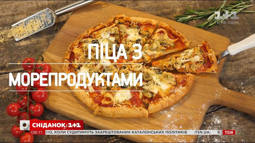 В такую погоду хочется чего-то вкусного и летнего. Руслан Сеничкин предлагает приготовить пиццу с креветками, мидиями и кальмарами. Для приготовления блюда потребуется: дрожжевое тесто - 400 г, томатный соус, лук - 1 шт, помидоры - 2 шт, моцарелла - 150 г, морепродукты - 200 г, зелень и специи по вкусу. Приятного аппетита!
