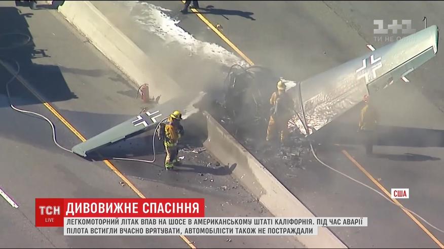 Пилот выжил после падения самолета на оживленную трассу Калифорнии