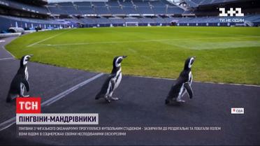 Пингвины из чикагского океанариума прогулялись футбольным стадионом