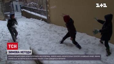 На аномально холодную погоду и обильные снегопады жалуются в Ливане и на Голанских высотах. Накануне снегом засыпало и север Саудовской Аравии. Из-за непогоды пришлось перекрыть часть дорог. А для ливанцев морозы еще и ударили по кошелькам. Страна сейчас находится на грани экономического коллапса и обогревать дома не по карману большинства ливанцев, так что им приходится мерзнуть.