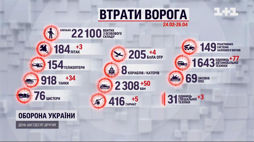 По состоянию на 26 апреля украинская армия ликвидировала уже более 22 тысяч российских захватчиков