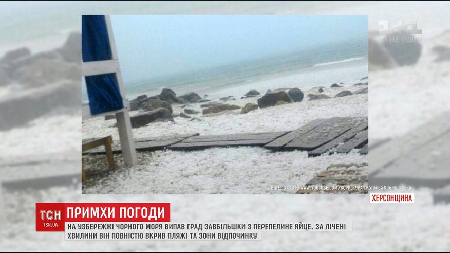 Побережье Черного моря в Херсонской области засыпало огромным градом