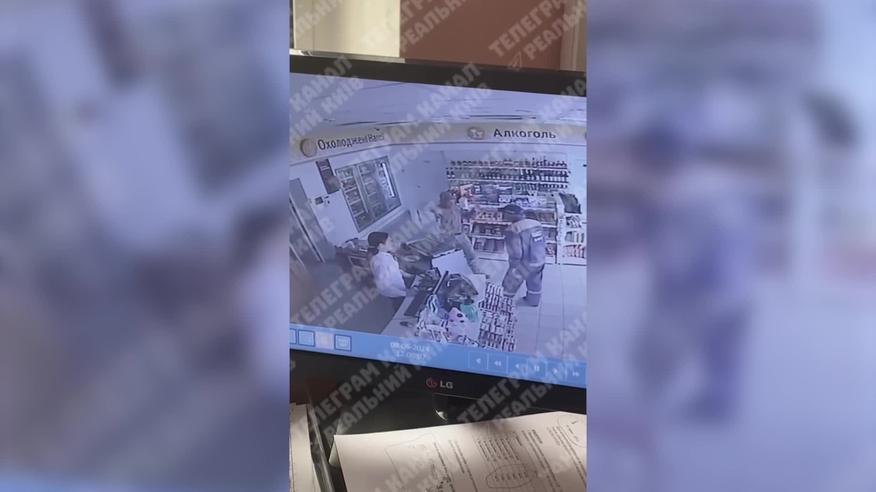 Под Киевом на АЗС мужчина в военной форме достал нож и стал бросаться на кассиршу