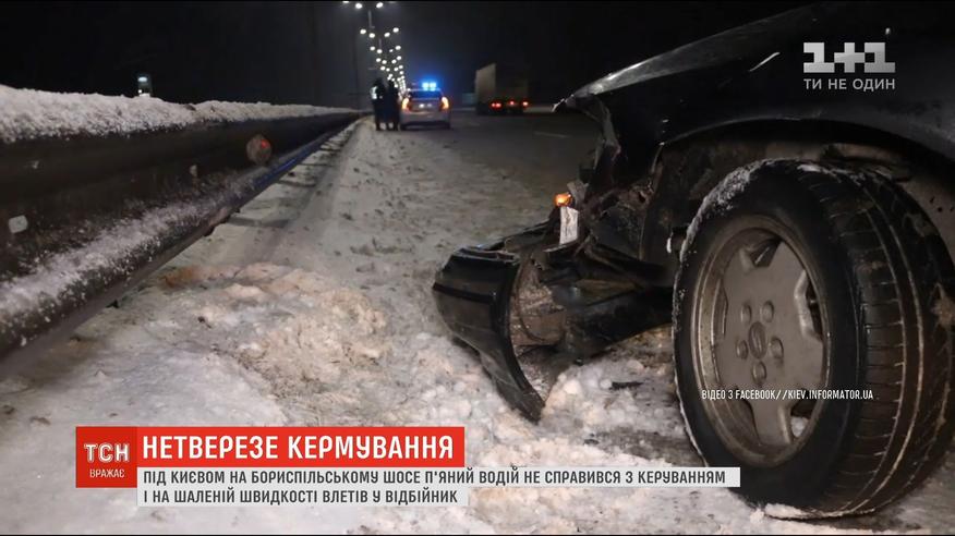 Под Киевом на Бориспольском шоссе пьяный водитель на большой скорости влетел в отбойник