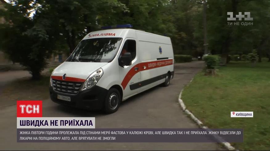 Под стенами мэрии Фастова женщина лежала полтора часа, но скорая так и не приехала