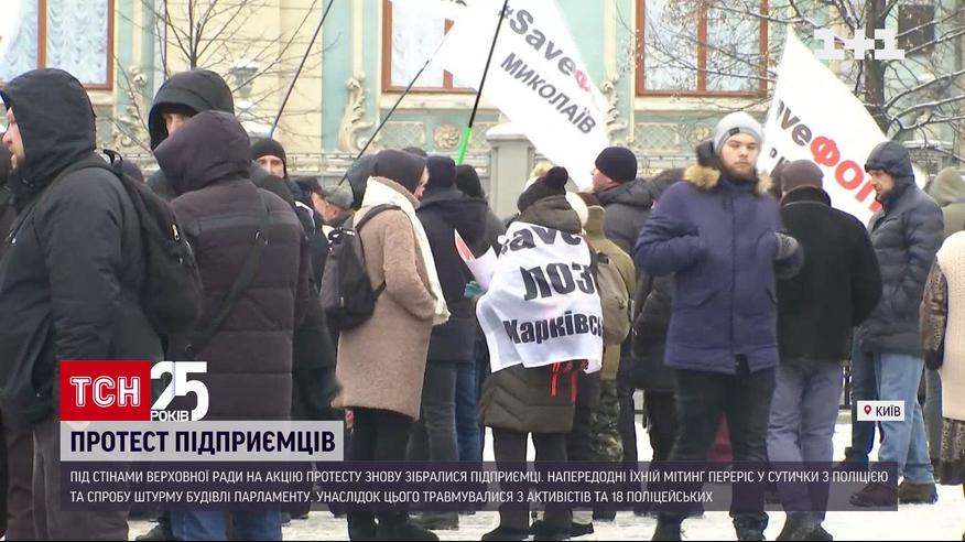Бессрочная акция протеста, которую накануне объявили предприниматели, продолжилась сегодня у стен Верховной Рады. Митингующих там сейчас гораздо меньше, чем было вчера. Сама же акция проходит мирно. Вчерашний митинг ФЛП перерос в стычки с полицией и попытку штурма Верховной Рады. В результате травмировались трое активистов и 18 полицейских.