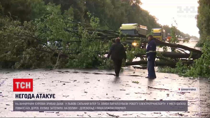 Непогода снова атакует - кратковременные, но мощные ливни с грозами прокатились центром и западом страны. В Винницкой и Львовской областях и на Волыни машины дрейфовали по залитым водой дорогам. Неудержимый ураган разбросал деревья, разрушил дома и разбил крыши. О последствиях непогоды - смотрите.