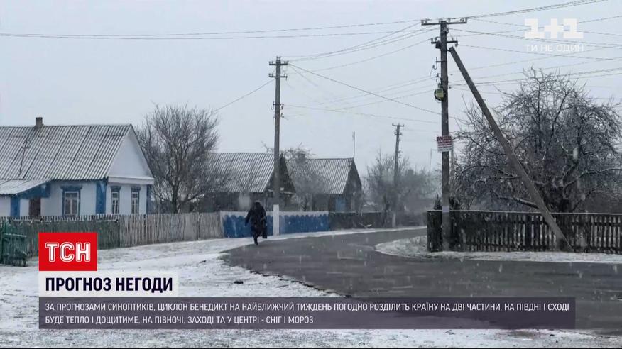 Одну половину страны будет заливать дождями, другую – засыпать снегом. Это прогноз синоптиков на неделю. В Украину пришел циклон "Бенедикт", он разделил погоду по всей территории. Холоднее всего будет на Западе, Севере и в центре. Там ожидаются ночные морозы и мокрый снег. А вот в Южных и Восточных областях будет тепло, но будет дождь.