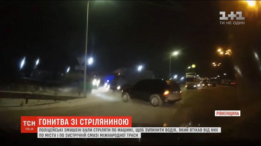 Копы ловили водителя, который ночью ехал без света. На требование остановиться не реагировал, а вовсю начал убегать. Сначала несколькими улицами Ровно, а дальше выехал на встречную полосу трассы Киев-Чоп. Нарушитель мчался на красный свет, протаранил полицейские авто и в это время в его машине была жена и 6-летняя дочь.