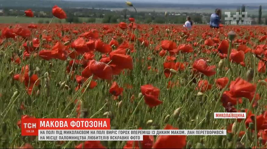 Поле под Николаевом стало популярным местом для фото после того, как там вместо гороха пророс мак