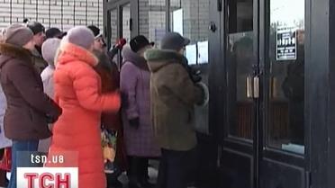 В городе Никополь, в Днепропетровской области, врачи и пациенты пытаются прорваться в диагностический центр - но их не пускает частная охранная фирма.