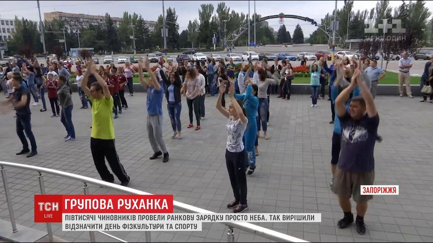 Полтысячи запорожских чиновников вышли на утреннюю зарядку в центр города
