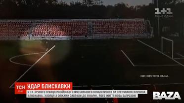 В 16-летнего российского футболиста прямо на тренировке попала молния. Момент удара зафиксировала камера. Игрок подмосковного клуба "Знамя труда" выжил и его забрали в больницу в тяжелом состоянии. Спортсмен получил ожоги, и, по сообщениям, его даже вводили в искусственную кому. Впрочем, сейчас врачи настроены оптимистично. Говорят - жизнь футболиста вне опасности.