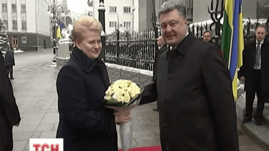 Порошенко встретил президента Литвы Далю Грибаускайте с букетом белых цветов