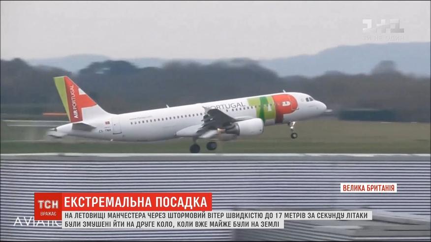 Посадка в непогоду: в Манчестере из-за штормового ветра и дождя самолеты не могли сесть с первого раза