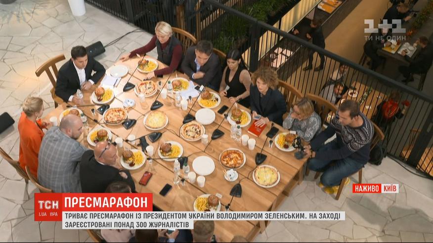 В центре столицы продолжается пресс-конференция президента. Более трехсот аккредитованных журналистов устроили Владимиру Зеленскому допрос на гастрорынке.