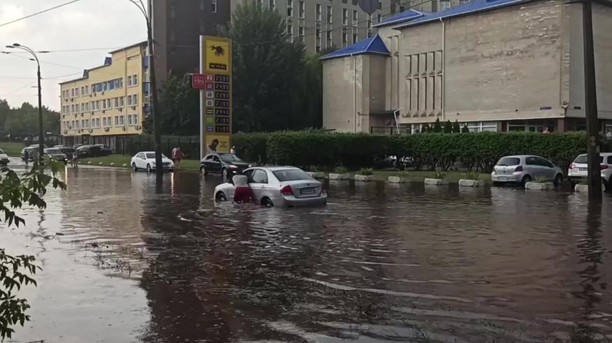 Киевом прокатилась гроза с ливнем. Возле станции метро "Берестейская" образовалась "река". Очевидцы свой путь называют "заплывом на Брестской" и шутят, что маршрутки и машины думают, что они каяки.