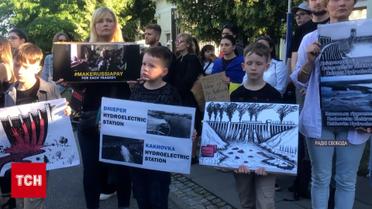 В годовщину подрыва Каховской ГЭС украинские и польские активисты в Варшаве организовали акцию протеста у российского посольства. Она состоялась в форме перформанса, воспроизводящего события дня взрыва дамбы. Больше в сюжете корреспондентки Радио Свобода Наталии Волосацкой для ТСН.