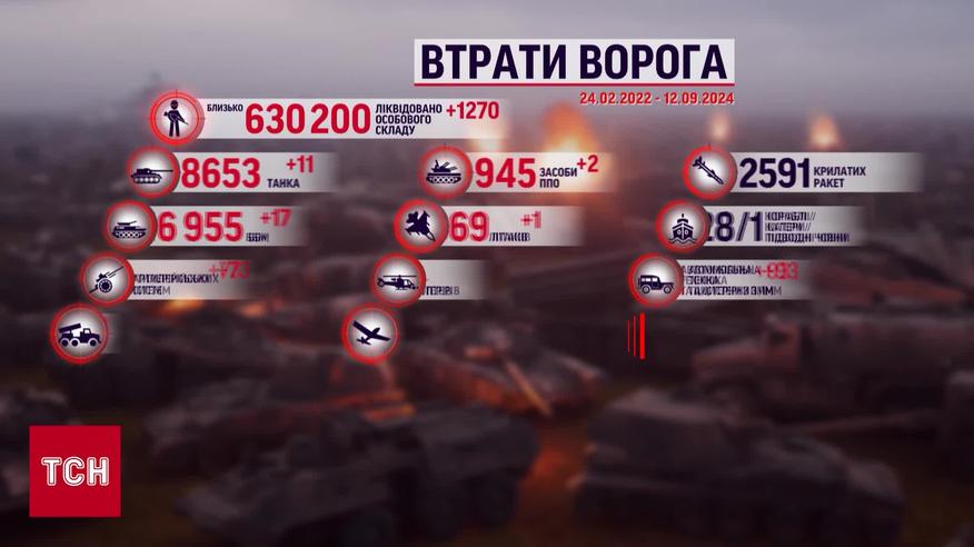 Потери врага 12 сентября 2024 года: самолет и 70 артиллерийских систем