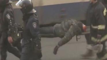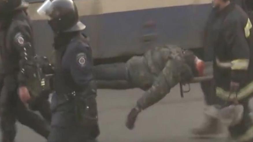 Появилось шокирующее видео переноса силовиками тела без головы на Майдане(Осторожно, жестокие кадры)