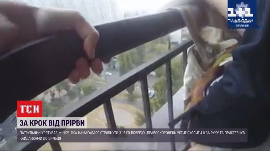 Поймал на лету: в Киеве патрульный спас женщину, которая прыгнула с 15-го этажа