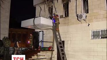 По словам свидетелей, пожар начался из-за взрыва внутри здания и снаружи никакого нападения не было. Сами же арендаторы помещения, самооборона в бронежилетах и балаклавах, комментировать произошедшее отказались.