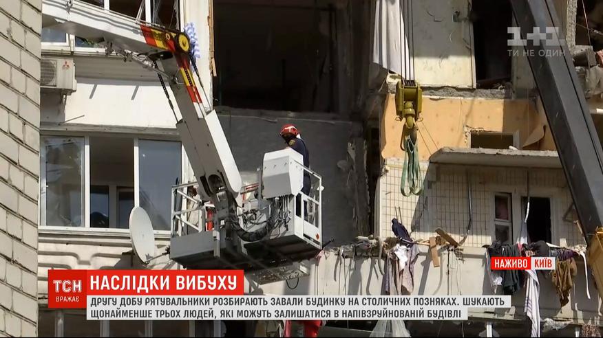 Вторые сутки разбирают завалы дома на Позняках, где в результате взрыва произошло обрушение четырех этажей. Из-под завалов спасатели извлекли тела трех жителей дома. Еще троих ищут. Эту ночь 45 жителей поврежденной многоэтажки провели в интернате, там их разместили столичные чиновники. Остальные люди разъехались по родственникам. Что происходит на месте событий - в прямом включении.